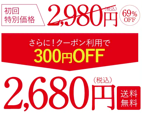 公式サイトでは定期コースのお申し込みでのみ初回、通常よりも約69%OFFの税込2,680円で販売されています。