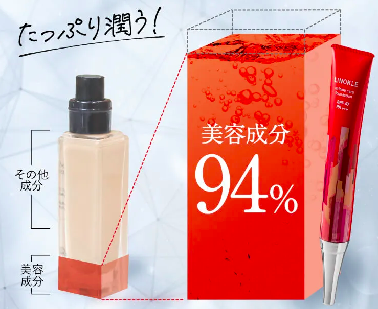 リノクルはファンデーションのカバー効果の他にも美白効果やシワ改善などの効果が期待できます。